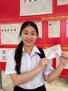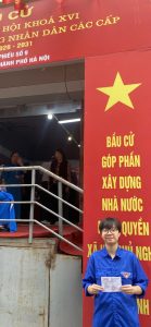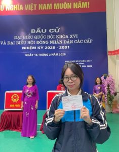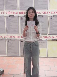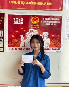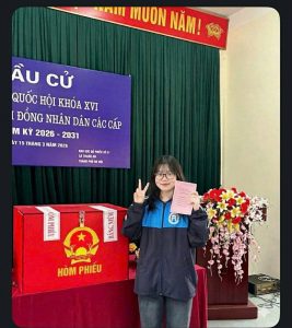 Chân thành cảm ơn các bạn đoàn viên đã chia sẻ hình ảnh tự hào trong ngày bầu cử: Đỗ Khánh Linh 2531A01, Hoàng Thị Thuyết 2231A01, Kim Thị Ngọc Anh 2531A01, Lê Thục Uyên 2332A01, Lương Vũ Gia Bách, 2332A01, Nguyễn Anh Đức 2531A01, Nguyễn Phạm Thu Trang 2532A01, Nguyễn Thị Ngọc Bích 2532A01, Nguyễn Thị Quỳnh 2532A02, Nguyễn Thị Quỳnh Như 2531A02, Nguyễn Văn Bình An 2532A01, Nguyễn Văn Đạt 2531A02, Phạm Minh Ngọc 2531A02, Phạm Ngọc Tuân 2332A02, Phạm Thị Thanh Thảo 2531A02, Phạm Thu Ngân 2532A01, Phan Thị Kiều Ngọc 2532A02,Tạ Hoàng Minh 2332A02, Trần Ngọc Anh 2532A02, Trần Thị Ngọc Ánh 2532A02, Trịnh Minh Khuê 2332A02, Trịnh Yến Nhi 2432A02, Văn Tiến Thảo Nguyên 2532A01, Vũ Ngọc Chi 2532A01, Vũ Phương Trang 2331A01